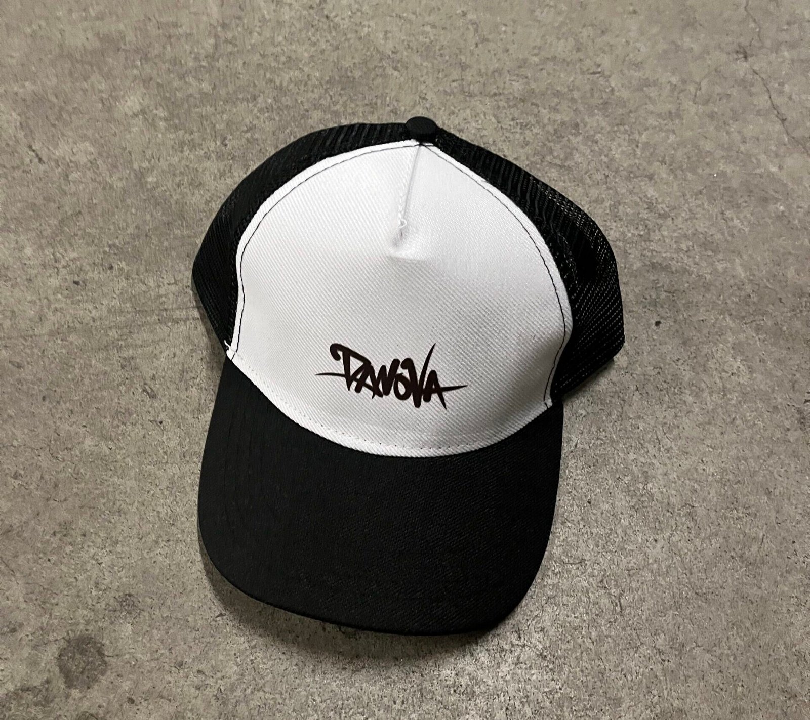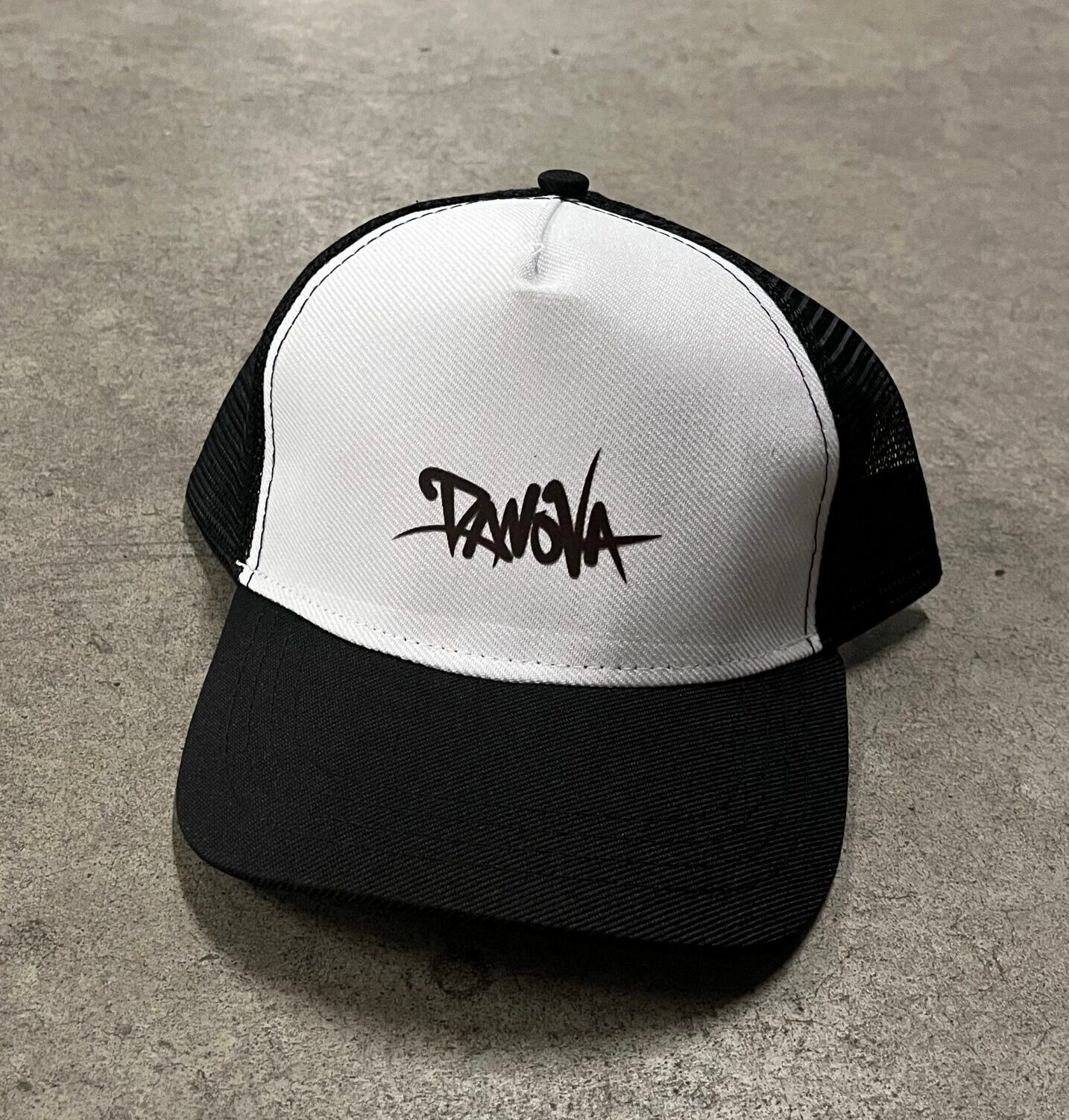 Características Boné aba curva trucke Regulador de plástico Cores: Preto & Branco Cuidados Lavar à mão ou em ciclo delicado na máquina Não utilizar alvejantes Secar à sombra para evitar desbotamento Passar com ferro em temperatura baixa